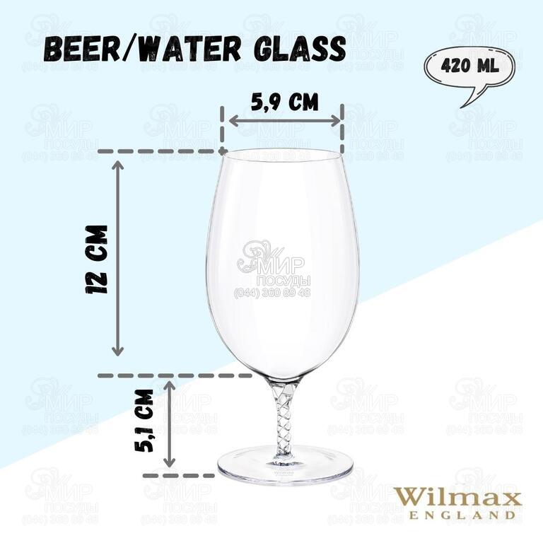 Набір келихів для пива від Wilmax виготовлений з кришталевого скла. Асортимент продукції Wilmax задовольнить всілякі переваги вимогливого ресторатора, а також буде цікавим для споживачів для використання в домашніх умовах. Він включає все необхідне для сервірування Вашого столу, має велику різноманітність форм, що дає можливість підібрати столовий посуд на будь-який смак і для будь-якого інтер'єру. Нова колекція келихів Wilmax, створена спільно з відомою актрисою та телеведучою, автором кулінарних книг – Юлією Висоцькою.