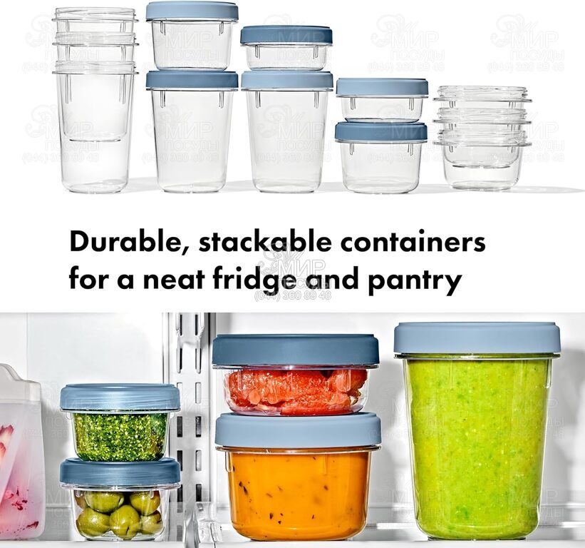 Контейнери Good Grips від OXO ідеально підходять для зберігання залишків їжі або для того, щоб брати її з собою в дорогу. Вони оснащені герметичним ущільненням, що гарантує герметичність, і мають зручну конструкцію, що дозволяє заощаджувати місце в шафах, холодильнику або у сумці. Контейнери стійкі до появи плям та деформації.