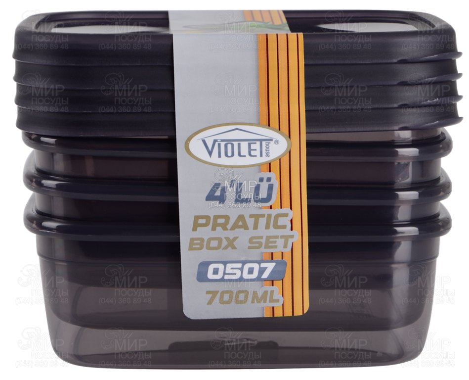 Світ посуду - Кухонний посуд - Ємності для продуктів - Набори контейнерів - Набір контейнерів харчових 700мл 0507 PRATIC