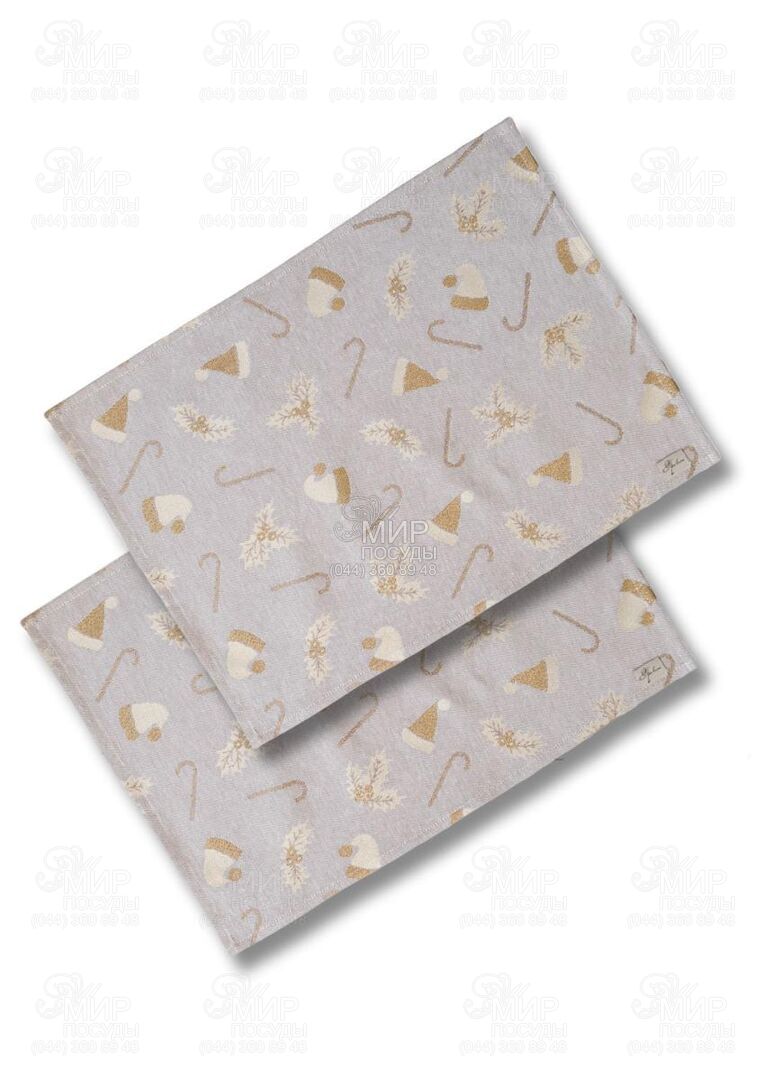 Світ посуду - Домашній інтер'єр - Килимки та серветки для сервірування - Сервірувальні серветки - Набір серветок сервірувальних з люрексом Шапочки на бежевому 35х45см 4823093422995