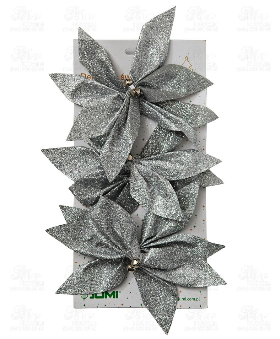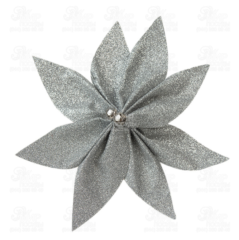 Світ посуду - Домашній інтер'єр - Новорічний декор - Ялинкові іграшки - Набір ялинкових прикрас Квітка срібляста з блискітками 17см 5900410699984