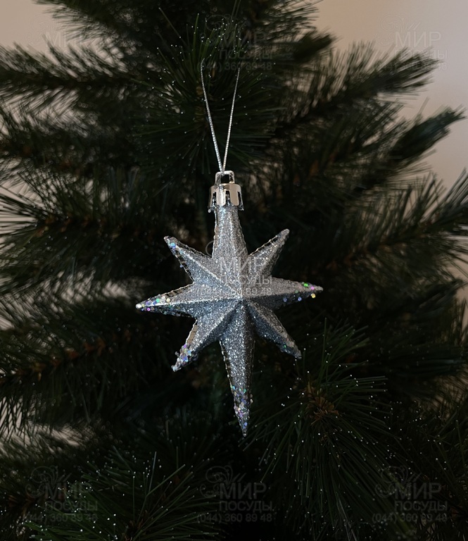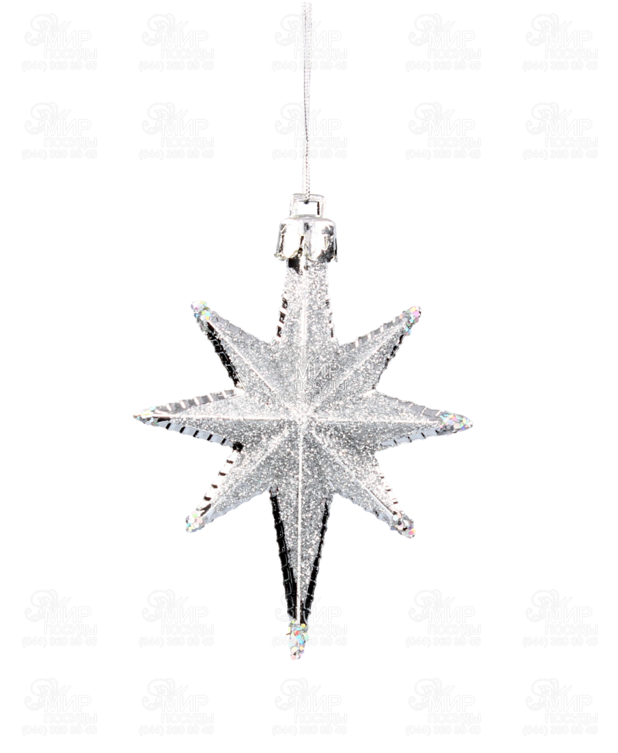 Світ посуду - Домашній інтер'єр - Новорічний декор - Ялинкові іграшки - Набір ялинкових іграшок Зірка срібляста 9см 5901292631147_1