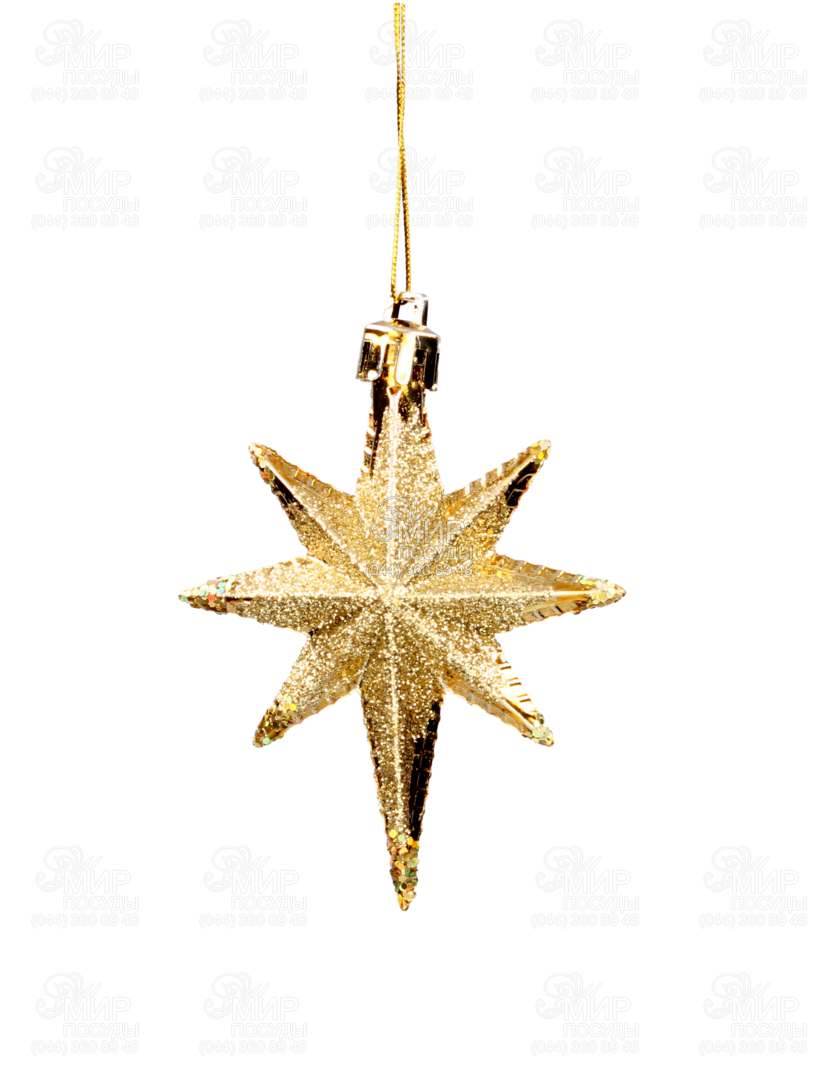 Світ посуду - Домашній інтер'єр - Новорічний декор - Ялинкові іграшки - Набір ялинкових іграшок Зірка золотиста 9см 5901292631147_2
