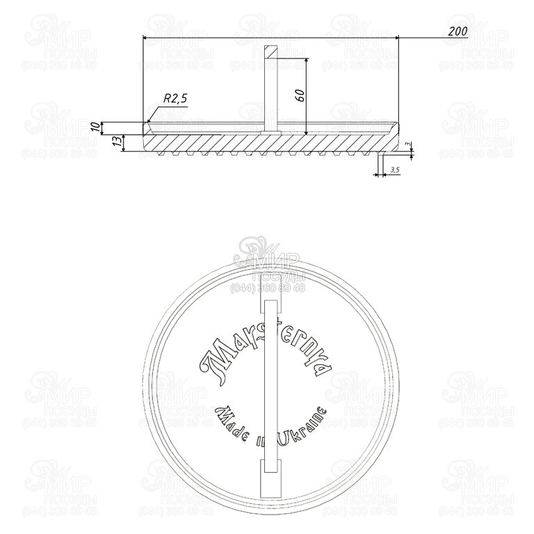 Характеристика: діаметр 20 см, товщина 2 см, вага 3,3 кг