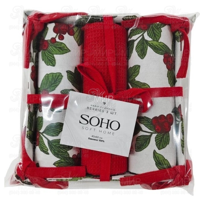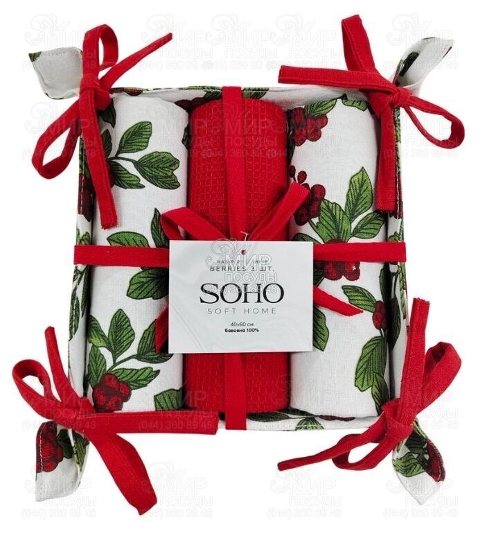 Набір рушників від торгової марки Soho виготовлений із 100% бавовни. Рушники м'які навпомацки, міцні та зносостійкі, добре вбирають вологу і швидко сохнуть. Вони довго зберігають колір та привабливий зовнішній вигляд, стануть стильним атрибутом та незамінними помічниками на Вашій кухні.