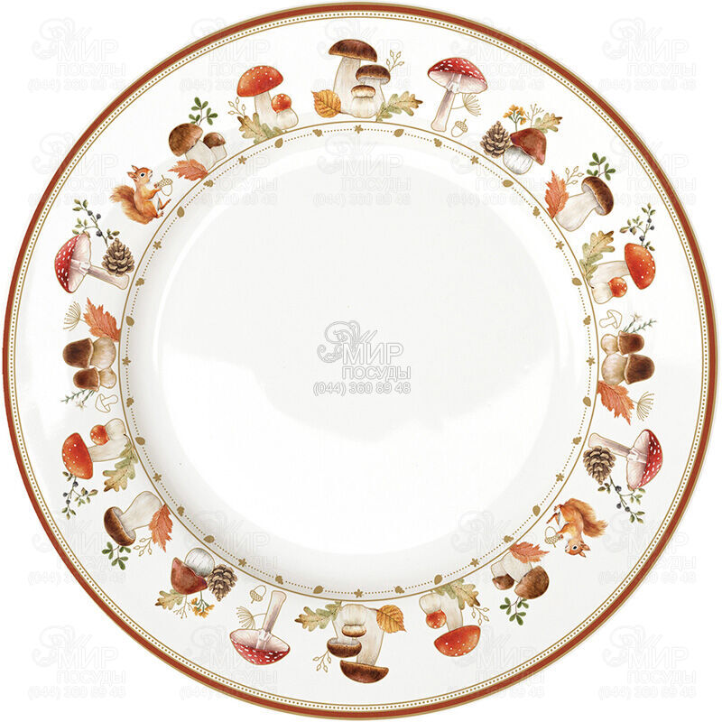 Колекція Autumn Breeze від Easy Life — це справжнє втілення тепла й затишку осінніх днів. Витончені порцелянові вироби прикрашені чарівними ілюстраціями лісових мотивів: стиглі гриби, жолуді, шишки, кленове листя й маленькі білочки створюють атмосферу домашнього комфорту. Теплі відтінки коричневого, теракотового й золотистого на білому тлі додають сервіруванню особливого шарму та гармонії. Ця колекція стане чудовим вибором для сімейних обідів, осінніх свят чи просто для того, щоб наповнити будні нотками природи й спокою.