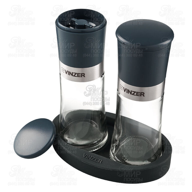Світ посуду - Кухонні аксесуари - Млини для солі та перцю - Набір млинів для солі та перцю на підставці Vinzer 14,1см 50195