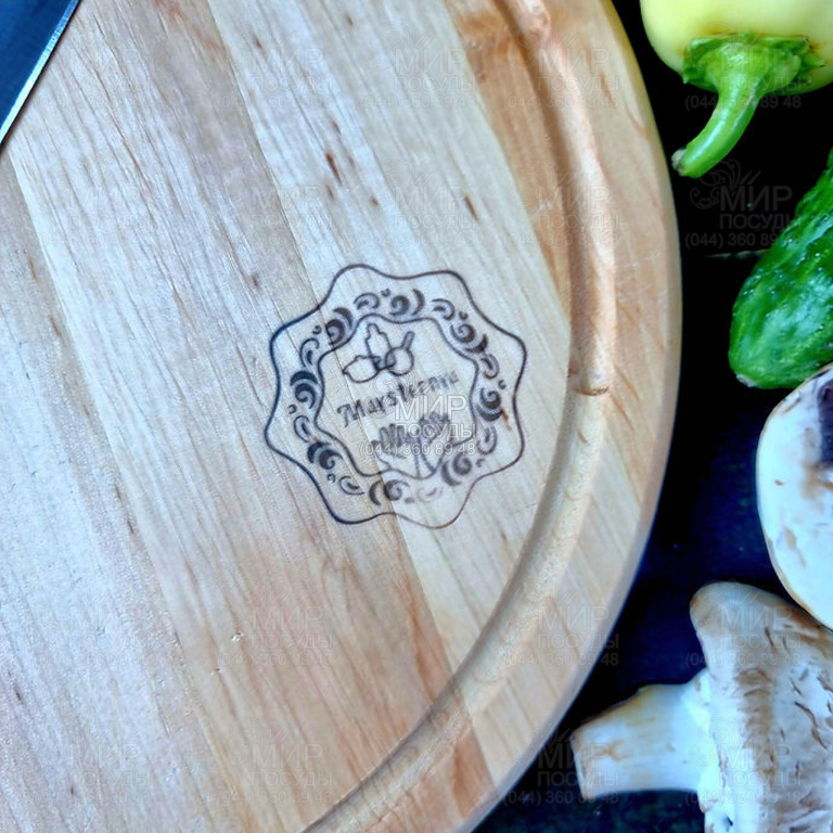 Дошка від українського бренду Maysternya виготовлена з екологічно чистого матеріалу. Робоча поверхня має якісну основу, без будь-яких написів та малюнків. Також має поглиблення по периметру, які утримують соки та рідини від продуктів. Дошка багатофункціональна, на ній можна подавати піцу, а також нарізати продукти або використовувати для подачі сирів і закусок. Дошка зроблена з кращих матеріалів, що робить її не тільки красивою та естетичною, але й міцною та довговічною. Міцне дерево не деформується і не ушкоджується, незалежно від того, що Ви на ній подаєте або ріжете.