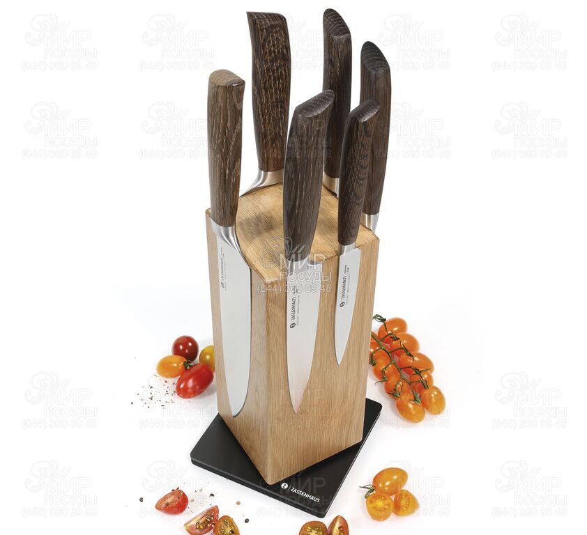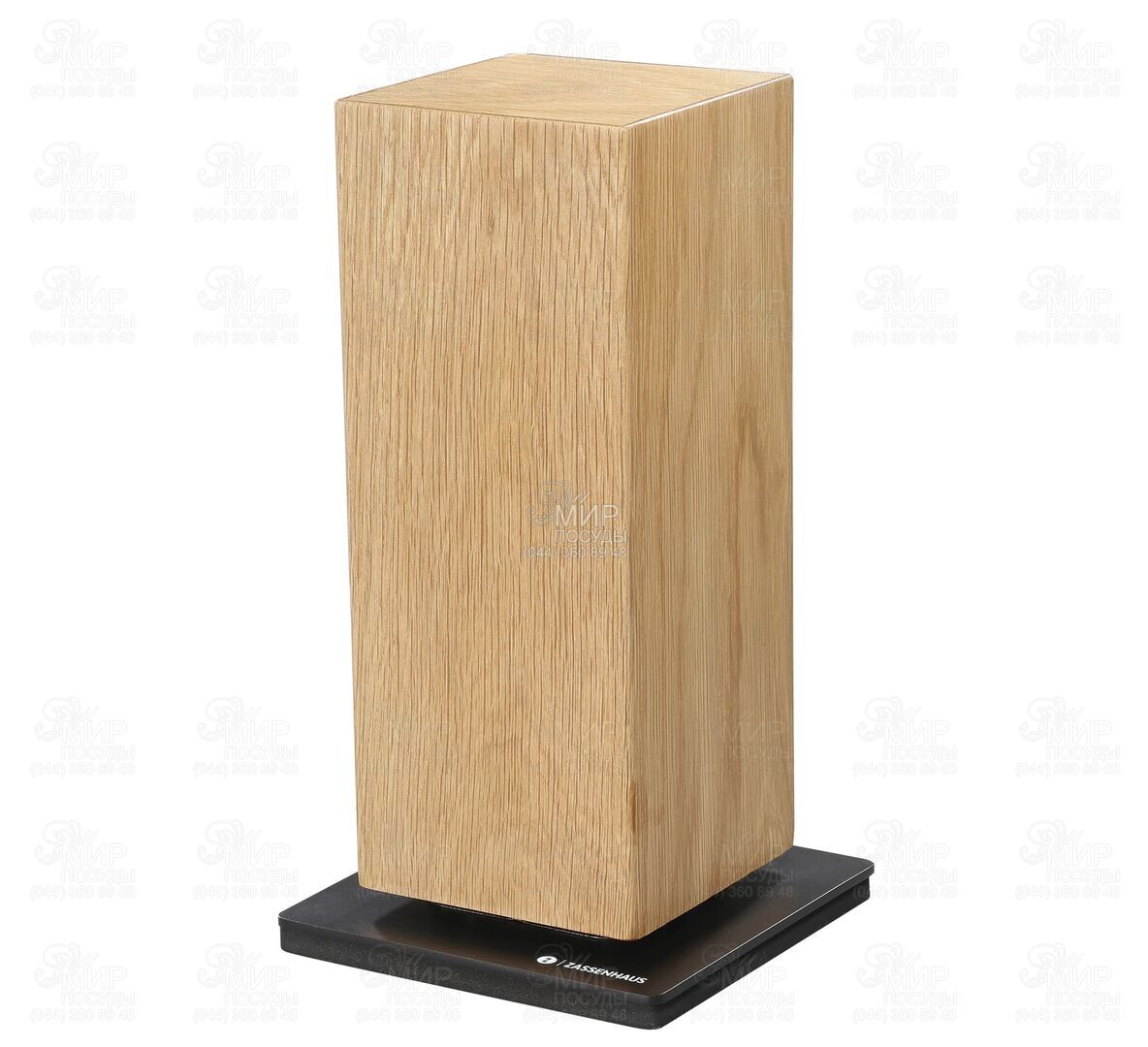 Магнітний блок-тримач для ножів від німецької компанії Zassenhaus виготовлений з дубу. Оснащений обертовою опорною пластиною на шарикопідшипниках, гарантує, що потрібний ніж завжди буде у вас під рукою. Міцна пластина із нержавіючої сталі також захищає вашу поверхню. Підставка з масиву дерева вміщує до восьми ножів із лезами завдовжки до 23 см. Міцні внутрішні магнітні смужки надійно утримують їх на місті. Повертайте його як завгодно: елегантний дизайн чудово виглядає під будь-яким кутом.