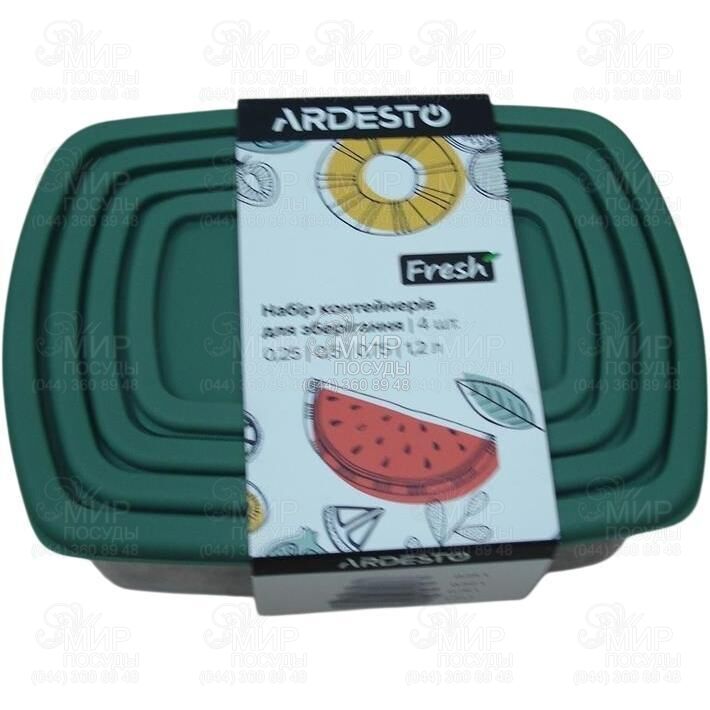 Світ посуду - Кухонний посуд - Ємності для продуктів - Набори контейнерів - Набір контейнерів харчових Fresh Green 250/500/750/1200мл AR1312G