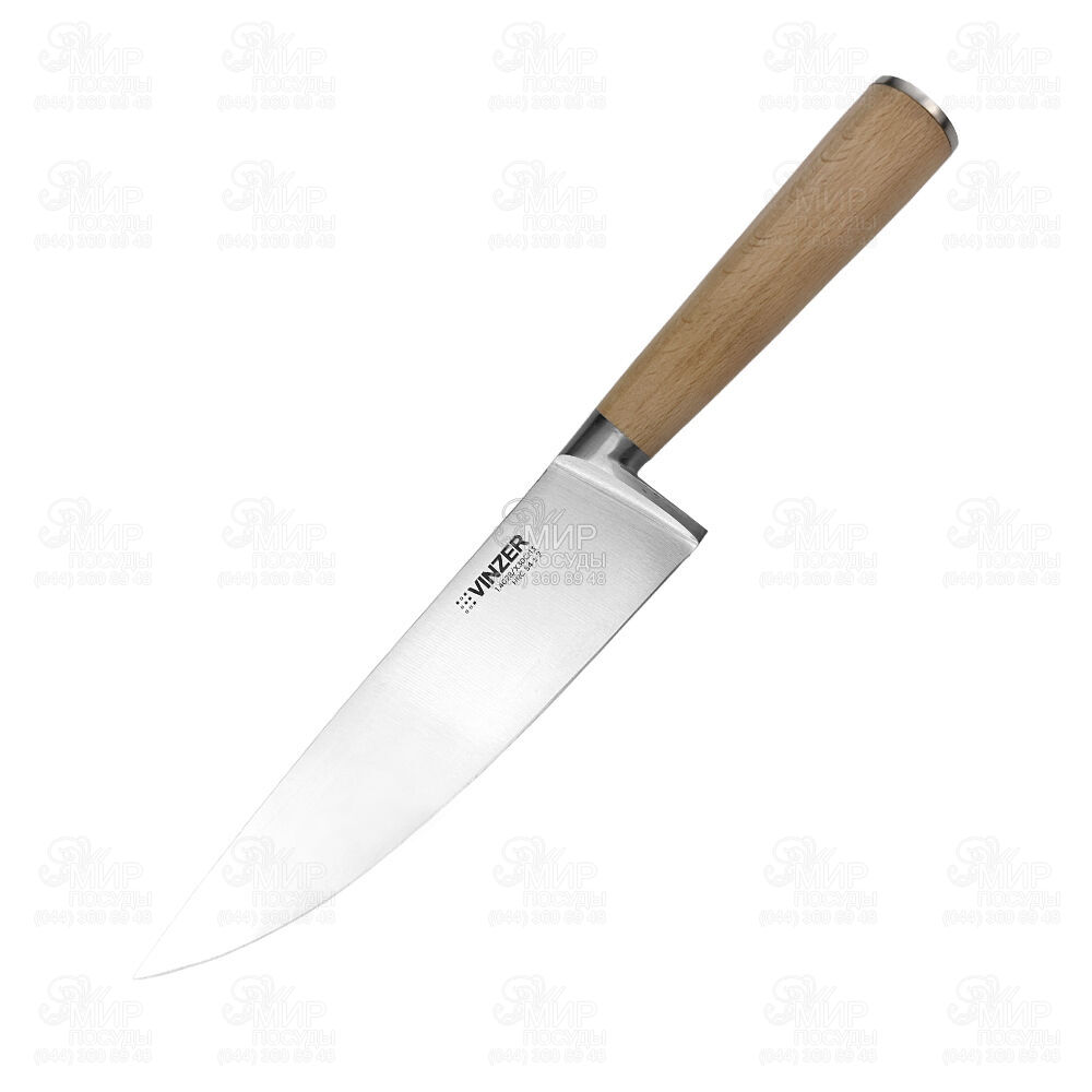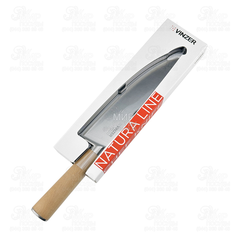 Ніж Natura Line від бренду Vinzer виготовлений з високовуглецевої сталі, стійкої до механічних пошкоджень і корозії. Дерев’яна ручка зручна у використанні, має ергономічний дизайн та не ковзає під час роботи. Лезо має клиноподібний перетин, тому ріжуча кромка довгий час зберігає гостроту і не потребує частих заточувань. Ніж дозволить тонко та акуратно нарізати різні продукти.