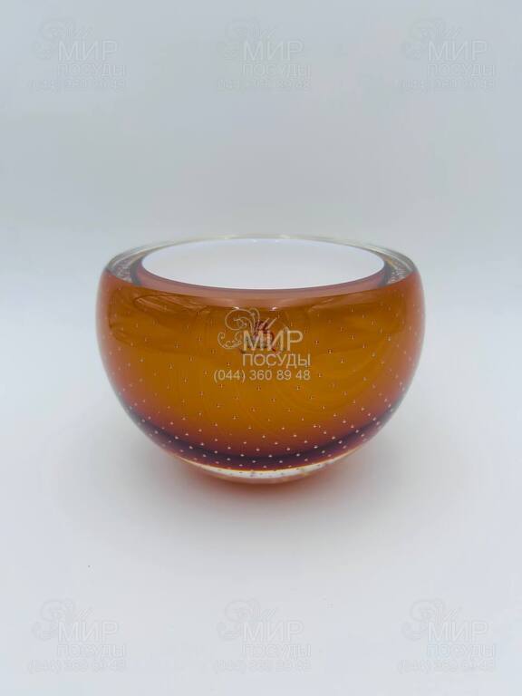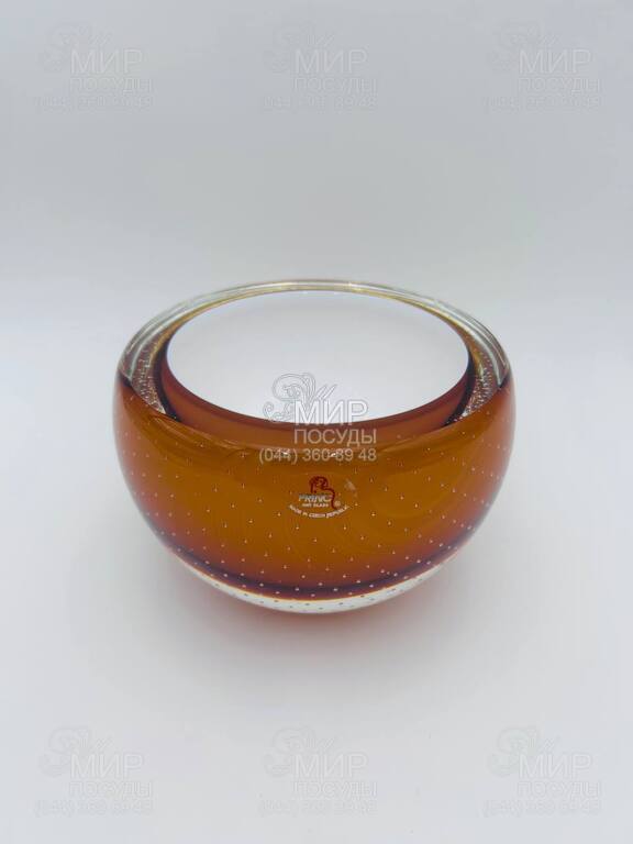 Витончена цукерниця від Prince Art Glass — це стильний елемент сервірування та елегантна прикраса інтер’єру. Виріб виготовлений із художнього скла теплого бурштинового відтінку, що створює ефект глибини та красиво переливається у світлі. Усередині скла декоративно розміщені дрібні бульбашки, які надають виробу особливої фактурності та підкреслюють його унікальний характер. Завдяки округлій формі та масивним стінкам цукерниця виглядає солідно й водночас дуже елегантно. Вона чудово підходить для подачі цукерок, горіхів, сухофруктів або печива, а також може використовуватися як декоративна скляна чаша для прикрашання столу чи інтер’єру. Вироби з художнього скла часто поєднують функціональність і декоративність, перетворюючи звичайні предмети сервірування на стильні акценти в домі.