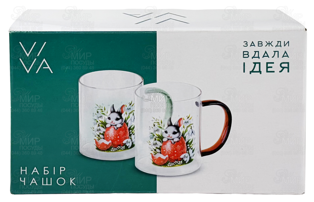 Барвисті великодні кухлі Easter Rabbit від VIVA виготовлені зі скла. Вироби не виділяють небезпечних речовин при використанні, не вбирають запахи та легко миються. Головною відмінністю продукції цього бренду є унікальні та лімітовані пропозиції в кожній серії, а також якість, що відповідає всім стандартам.