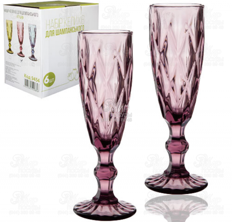 Світ посуду - Питний посуд - Келихи - Келихи для шампанського - Набір келихів для шампанського Грані 200мл 9454 burgundy
