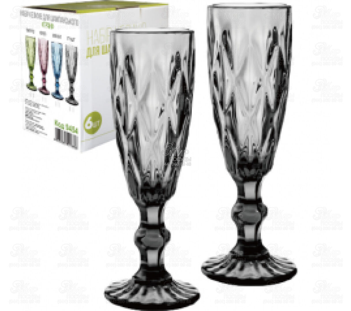 Світ посуду - Питний посуд - Келихи - Келихи для шампанського - Набір келихів для шампанського Грані 200мл 9454 graphite