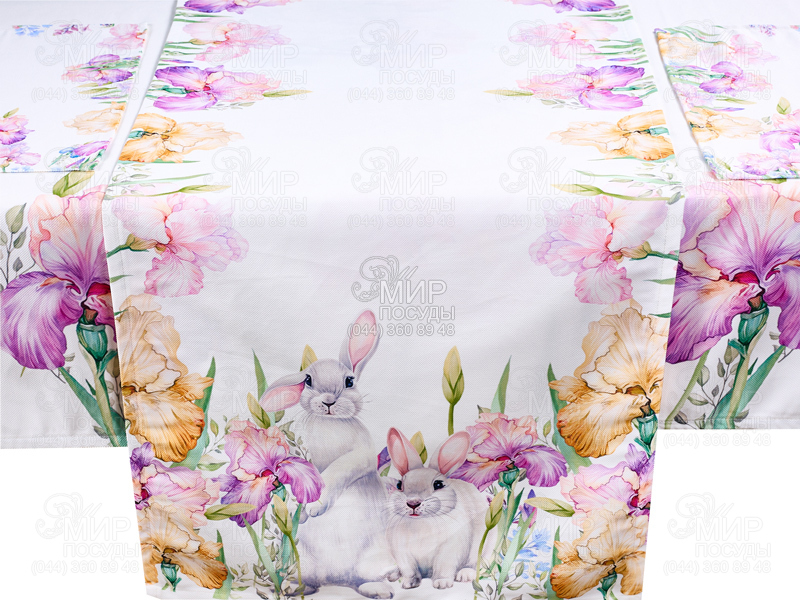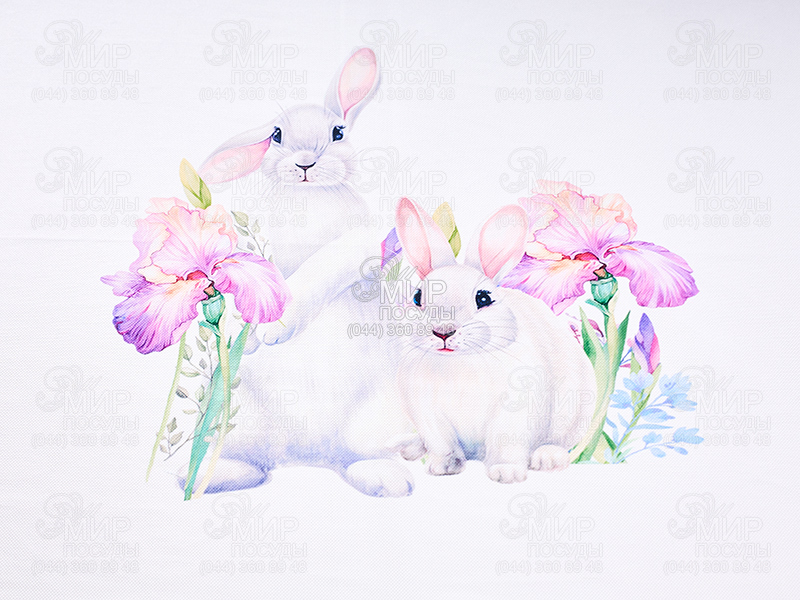 Світ посуду - Домашній інтер'єр - Домашній текстиль - Скатертини - Скатертина Кролики у квітах 140х180см 796-015