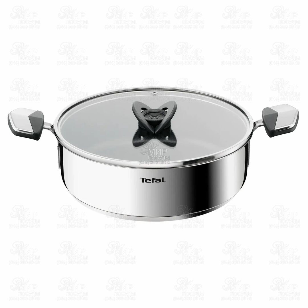 Сотейник із кришкою Excellence+ від Tefal поєднує корпус із нержавіючої сталі та антипригарне покриття Extra Life X5, що забезпечує стійкість до зношування під час щоденного використання. Індикатор нагрівання Thermo-Signal стає повністю червоним при досягненні оптимальної температури для початку приготування. Індукційне дно забезпечує рівномірне розподілення тепла при приготуванні на різних типах плит. Поєднання нержавіючої сталі та бакеліту знижує передачу тепла в зону хвату.