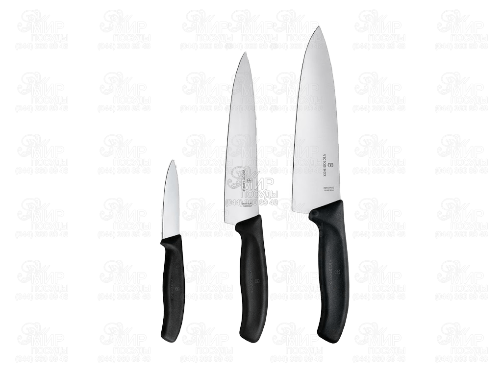 Швейцарський набір ножів Swiss Classic від Victorinox виготовлений із нержавіючої сталі. У набір входять маленький ніж для очищення овочів і фруктів, а також два великих ножа, які призначені для більш серйозної роботи: нарізки м'яса і овочів, шинкування, подрібнення і підготовки інгредієнтів різної форми - від тонких скибочок до акуратних кубиків. Такий набір стане незамінним помічником на кухні і допоможе готувати швидко, зручно і з задоволенням.