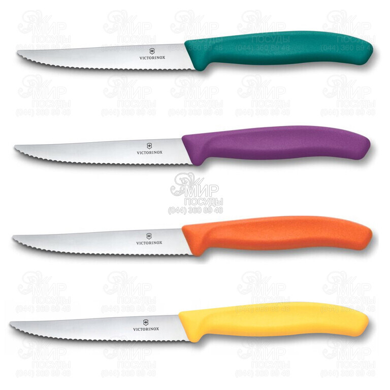 Швейцарські ножі Steak&Pizza Swiss Classic від Victorinox виготовлені з нержавіючої сталі. Хвилястий край легко розрізає і хрумку скоринку і м'яку м'якоть, тому ножі відмінно підходять для стейків і будь-яких м'ясних страв. Вони добре справляються з піцою, свіжою випічкою, овочами, рибою та фруктами. Такі ножі стануть практичними та універсальними інструментами для щоденного приготування та сервірування. Чорна практична підставка, яка входит в комплект, забезбепечує зручне зберігання.