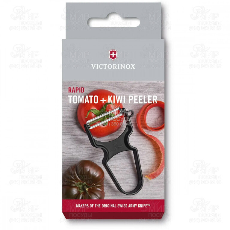 Овочечистка Rapid від швейцарського бренду Victorinox з подвійним зубчастим лезом дозволяє легко чистити будь-які фрукти та овочі. Відмінно підходить для видалення шкірки з ківі та томатів. Дуже гостре лезо із довговічної нержавіючої сталі з високими антикорозійними властивостями. Оскільки конструкція овочечистки дозволяє різати близько до шкірки фрукта чи овочів, то зберігаються властиві продукту вітаміни.