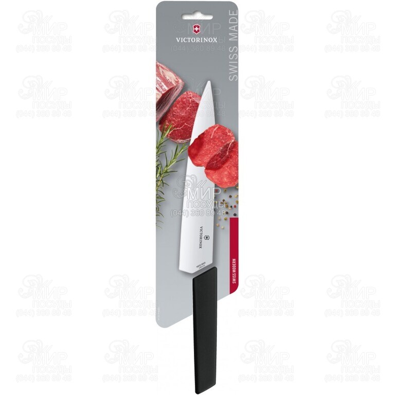 Ніж Swiss Modern від Victorinox поєднує в собі інноваційні технології та традиційну швейцарську якість, роблячи незамінним помічником як для професіоналів, так і для домашніх кухарів. Лезо виготовлено з високоякісної сталі, що забезпечує його довговічність і незмінну гостроту навіть у разі інтенсивного використання. Завдяки оптимальному співвідношенню товщини і гостроти, ніж ідеально підходить для нарізування та оброблення великих шматків м'яса, фруктів та овочів. З легкістю впорається як із готовим м'ясом, так і сирим, а широке лезо дозволяє легко нарізати навіть кавун або гарбуз. Особливу увагу приділено ручці – вона виконана з поліпропілену, який не ковзає в руках, що дає змогу працювати з ножем тривалий час, не відчуваючи втоми рук, а збалансована конструкція гарантує точне та легке керування інструментом.
