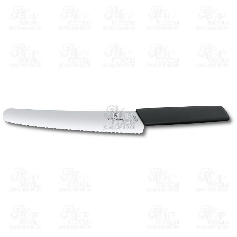 Ніж Swiss Modern від Victorinox для легкої й акуратної нарізки хлібобулочних і кондитерських виробів. Довге зубчасте лезо із високоякісної нержавіючої сталі з легкістю прорізає хрустку скоринку свіжого хліба, залишаючи мінімальну кількість крихт і забезпечуючи рівні, акуратні скибочки. Закруглений кінчик робить ніж багатофункціональним - його можна використовувати як шпатель для рівномірного нанесення крему або глазурі на торти і тістечка. Ніж також чудово впорається з нарізким овочів і фруктів із жорсткою скоринкою. Ергономічне руків'я зі зносостійкого полімеру, забезпечує надійний хват і стійкість до вологи, запахів і цвілі. Завдяки цим якостям ніж залишається гігієнічним і зручним у використанні навіть при інтенсивній роботі на кухні.