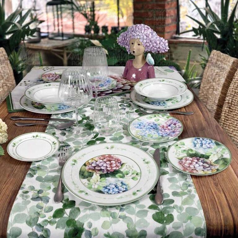 Серія Flora від Brandani — це вишукана симфонія природи, втілена у витонченій порцеляні. Натхненна ніжною красою квітів, колекція зачаровує гармонійним поєднанням пастельних відтінків та делікатних рослинних мотивів. Розкішні гортензії у м’яких рожевих, блакитних і кремових тонах створюють атмосферу легкості, свіжості та природної елегантності, перетворюючи кожен прийом їжі на естетичне задоволення. Особливу увагу привертає декоративний кант із тонкими зеленими гілочками, який делікатно обрамлює вироби та додає композиції завершеності. Завдяки продуманому дизайну, елементи серії чудово поєднуються між собою, дозволяючи створити гармонійне сервірування як для повсякденного використання, так і для святкових подій. Порцеляна від Brandani відзначається високою якістю, міцністю та довговічністю, вироби мають приємну гладку поверхню, стійкі до зношування та зберігають яскравість декору навіть після тривалого використання.
