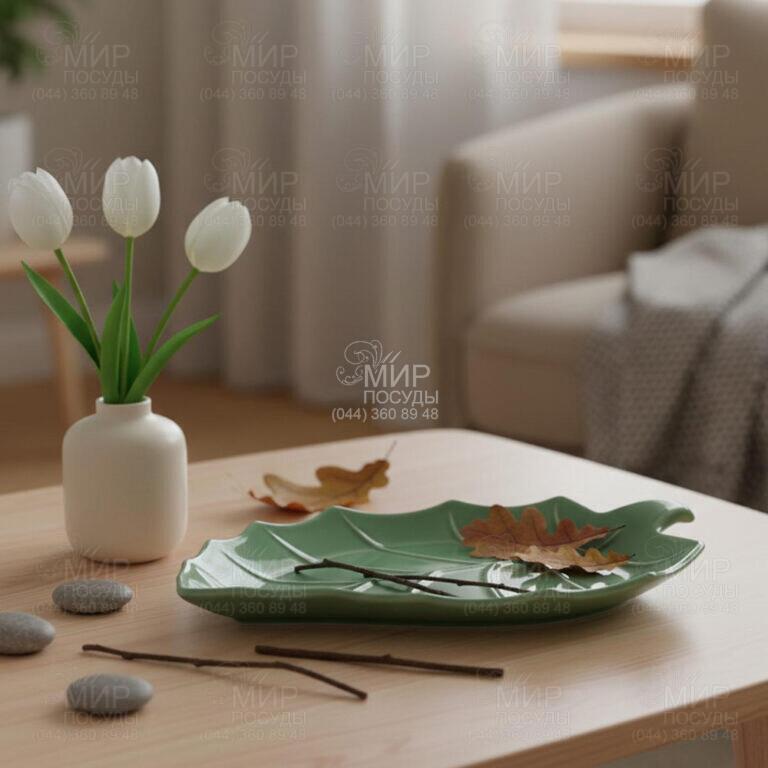Світ посуду - Столовий посуд - Блюда - Блюда фігурні - Блюдо сервірувальне Foglie Pioppo green 28х20см 51636