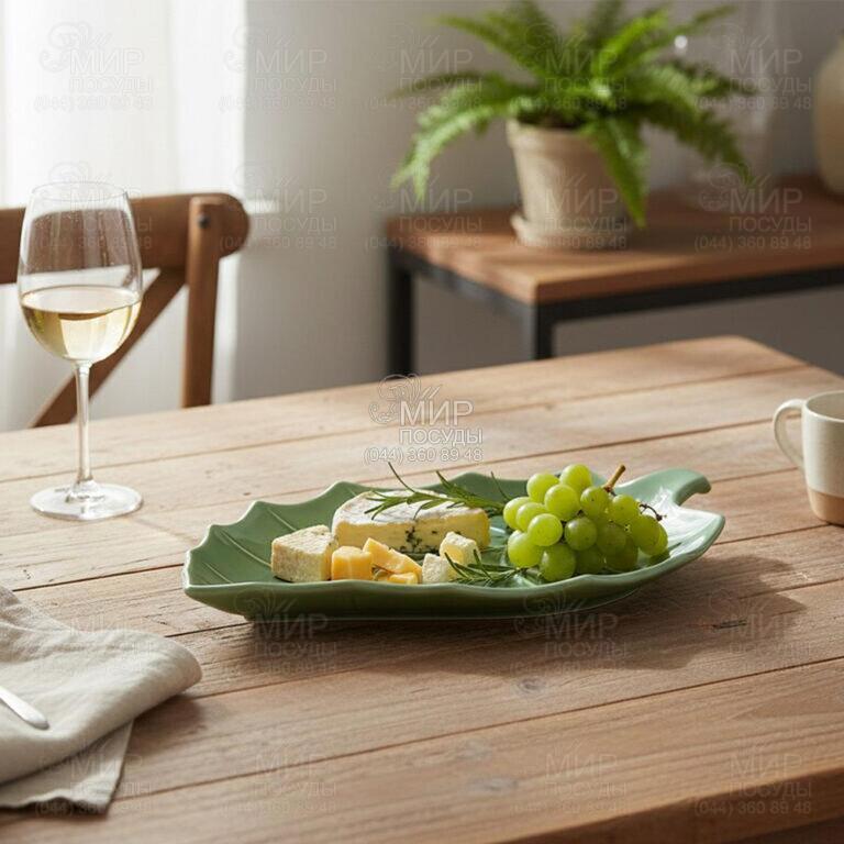 Світ посуду - Столовий посуд - Блюда - Блюда фігурні - Блюдо сервірувальне Foglie Pioppo green 33х24см 51637