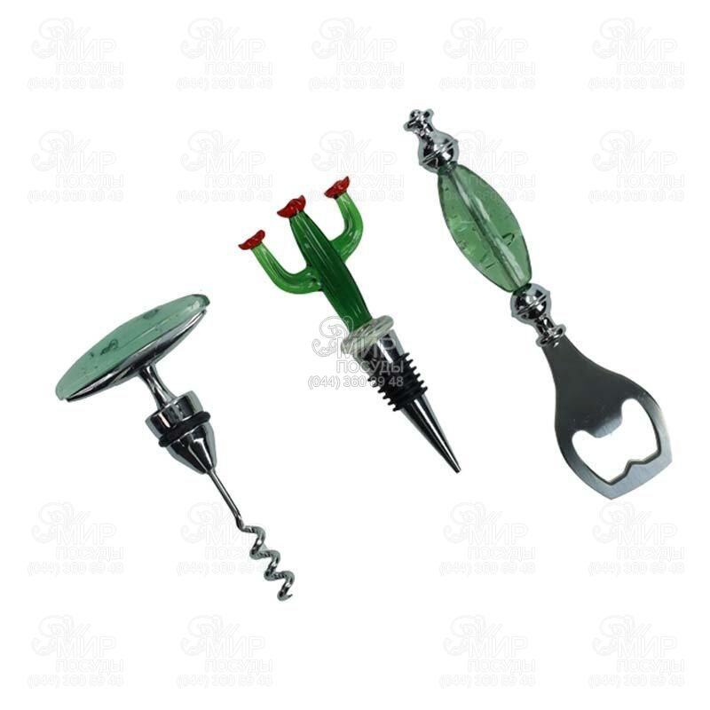 Подарунковий барний набір 3 в 1 від Brandani у формі кактусу – стильне та оригінальне рішення для любителів вина та красивих деталей. Дизайн натхненний природою: яскравий, свіжий та трохи грайливий, він привертає увагу та надає настрою будь-якому інтер'єру. У компактному корпусі зручно поєднані три необхідні інструменти: штопор, відкривачка та пробка для пляшки. Кожен елемент легко дістається та зручно використовується, забезпечуючи комфорт при відкриванні та зберіганні напоїв. Такий набір стане не лише практичним помічником, але й ефектним декоративним акцентом на кухні чи барній зоні.