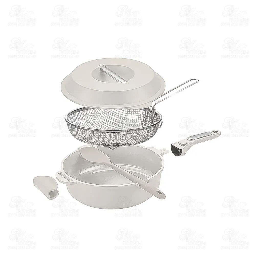 Багатофункціональний сотейник Pandora 10 в 1 від Brandani поєднує елегантний дизайн і практичність. Завдяки чистому білому кольору, антипригарному керамічному покриттю, внутрішньому кошику з нержавіючої сталі та знімній ручці він покликаний спростити повсякденне приготування їжі та запропонувати більше варіантів використання однієї ємності. Він підходить для смаження, приготування на пару, гасіння, обсмажування, варіння та запікання, а спеціальна кришка робить її ще більш функціональною.