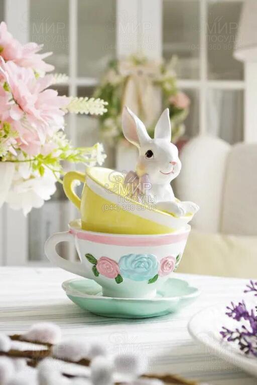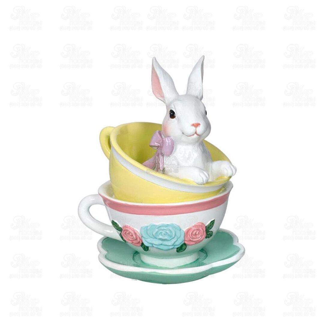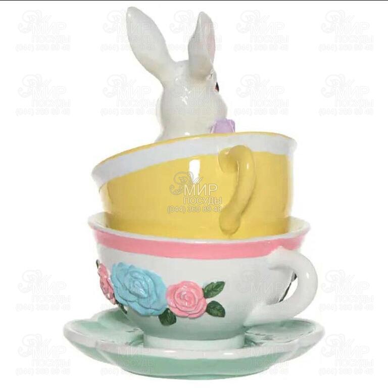 Світ посуду - Домашній інтер'єр - Скульптури - Статуетка Чаювання з кроликом Великодній сюрприз 16см 50156