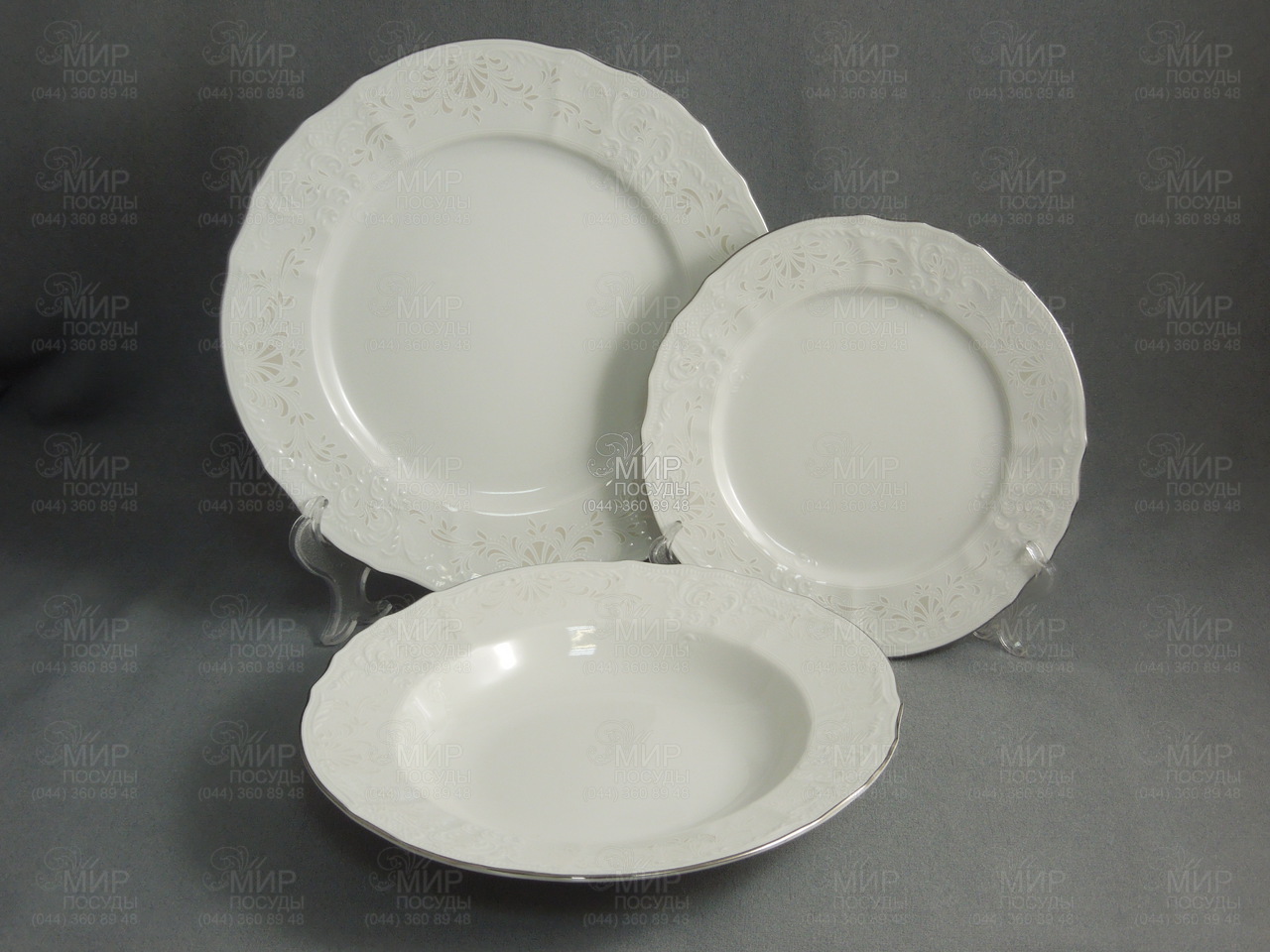 Світ посуду - Столовий посуд - Тарілки - Набір тарілок 6/18 - Набір тарілок Bernadotte "деколь, обведення платина" 6/18