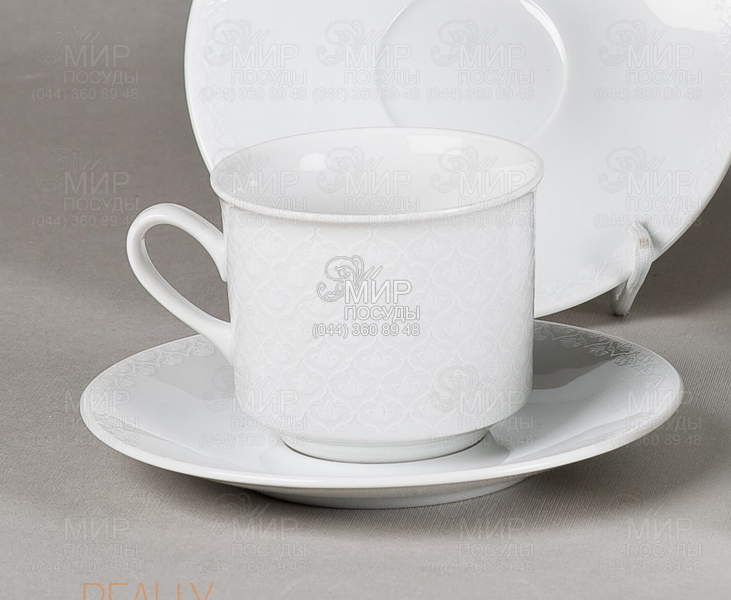 Світ посуду - Столовий посуд - Чашки - Чайні чашки - Чайна чашка з блюдцем Сабіна Біла сітка 200мл 02120415-2326
