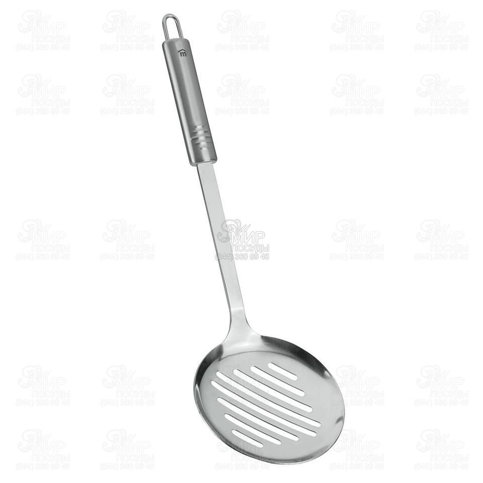 Шумовка - это важный и часто используемый кухонный аксессуар. Кухонные принадлежности серии Imperial от швейцарского производителя посуды Metaltex изготовлены из нержавеющей стали высокого качества. Современный дизайн и практичность выделяют данные предметы посуды среди прочих. Шумовка поможет снять пену из бульона, извлечь мясо, овощи или фрукты из жидкости. Удобная ручка овальной формы на конце оснащена петелькой для подвешивания. Посуду данной серии можно мыть в посудомоечной машине.