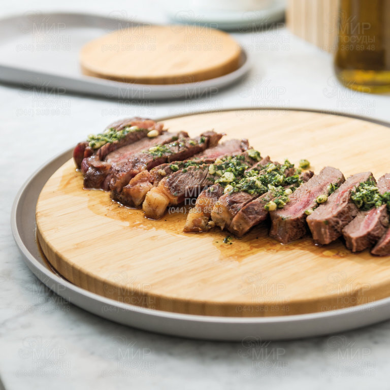 Світ посуду - Кухонні аксесуари - Дошки - Дошка обробна з тарілкою Leo line серый 36см 3950058