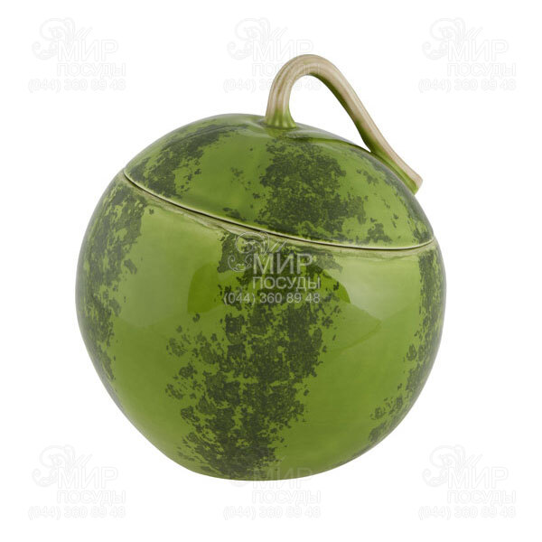 Супниця Кавун від португальського виробника Bordallo виготовлена з кераміки у стилі майоліка. Ця ємність має середні розміри і імітує зрілий кавун, вона оформлена в різних відтінках зеленого, які складаються в смужки, немов на справжньому кавуні. Ручка на кришці супниці формою повторює кавуновий хвостик, а всередині виріб пофарбований у червоний. Дана модель зробить подачу перших страв оригінальною, апетитною та красивою.