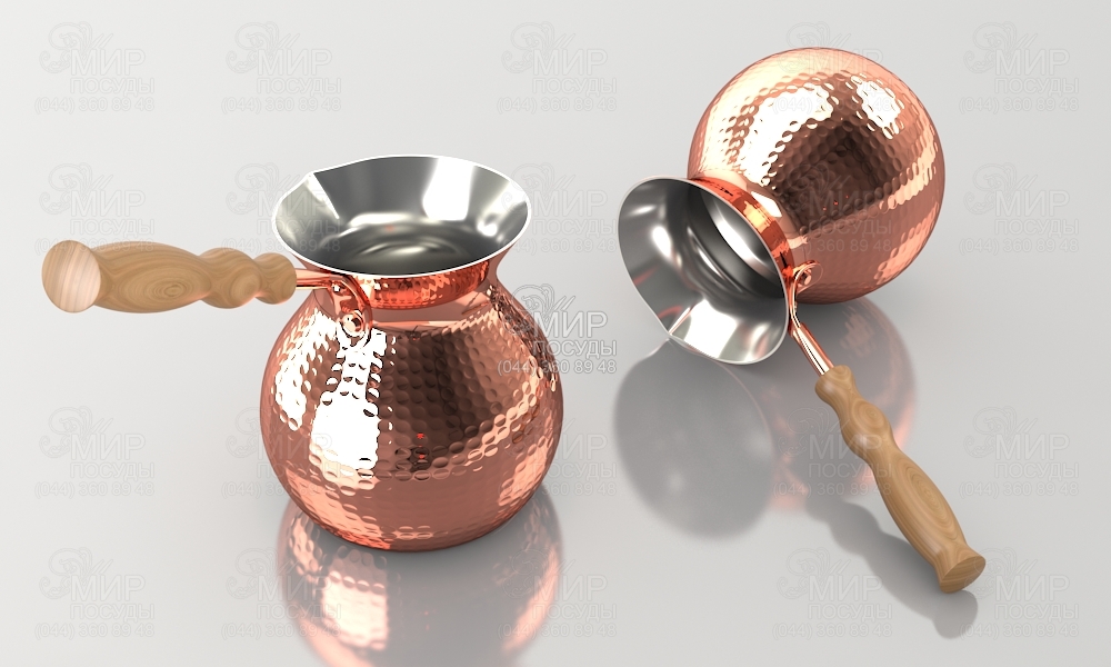 Мідна турка для приготування кави та чудового настрою на весь день! Виготовляється турка українськими майстрами, з аркуша чистої міді завтовшки 1,5 мм. Усередині покривається тонким напиленням харчового олова завтовшки 9 - 12 мкм. Підходить для приготування кави на електричних і газових плитах, а також інших нагрівальних поверхнях.