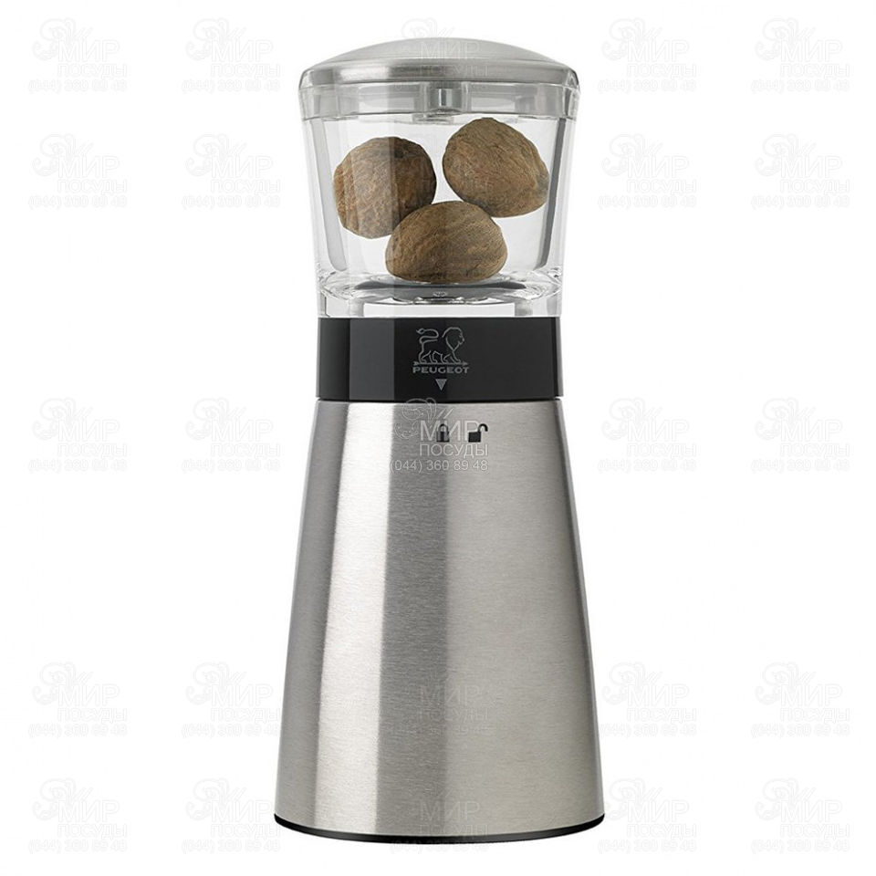 Млин для мускатних горіхів Daman від французького виробника Peugeot виготовлений із кристально прозорого акрилу та міцної нержавіючої сталі. Акриловий галантно вигнутий корпус зручно лягає у руці і дозволяє контролювати залишок спеції. Сталевий механізм виготовляється методом вакуумного напилення металу, завдяки чому відбувається чітке та швидке подрібнення. Млини Daman обладнані запатентованою системою контролю подрібнення u'Select.