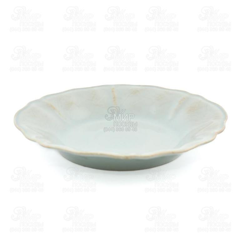 Тарілка для супу Alentejo від португальського виробника Costa Nova виготовлена з вогнетривкої кераміки у стилі прованс. Виріб за формою нагадує квітку, що розпустилася, з хвилястим краєм. Декорована ємність бічним тисненим орнаментом мініатюрною гілочкою оливи.