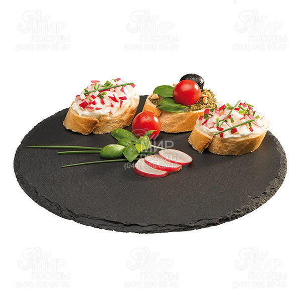 Фуршетна тарілка від німецького виробника APS виготовлена з натурального каменю. Виріб екологічно чистий, безпечний, не викликає алергію, досить міцний, витримує підігрів у НВЧ печі та охолодження в холодильнику. Призначений для подачі закусок, сирів, суші, стейків. Також буде незамінною у піцерії. Посуд прослужить не один рік, радуючи відвідувачів та забезпечуючи злагоджену роботу. Ще до переваг можна віднести малу вагу та абсолютну водонепроникність. Страва для подачі внесе родзинку, додасть вишуканості, вигідно відтінить і гармонуватиме з кулінарними шедеврами.