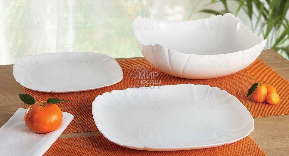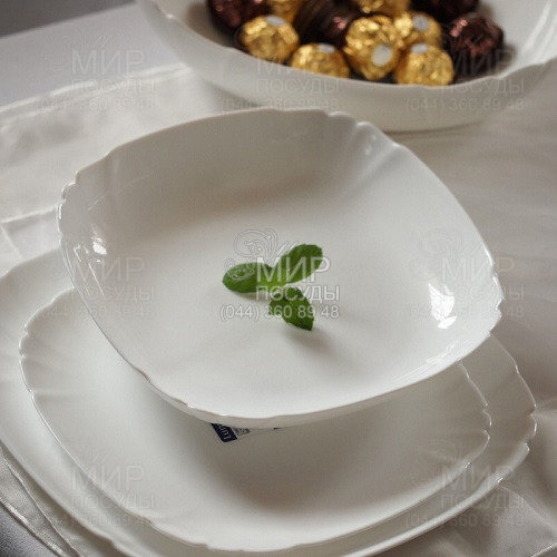 Набір тарілок Lotusia від французького виробника Luminarc виготовлений із ударостійкого скла. Комплект білого кольору стане справжньою окрасою обіднього столу.