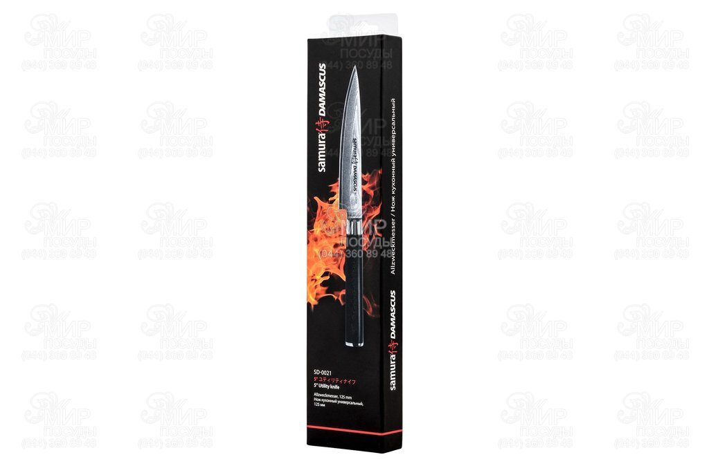 Легкий та багатофункціональний ніж для різання невеликих овочів та фруктів, ковбаси, сиру тощо. Один із найпотрібніших на кухні ножів (входить до «кухарської трійки»). Центральний шар - це високовуглецева сталь VG-10, яка забезпечує ножу бездоганні ріжучі властивості: тривалу гостроту та відмінний, агресивний різ. Дамаські обкладки SUS 430 та SUS 431 надають великої пружності і не дають центральному шару ламатися. Рукоятка ножа, виконана з волого- та термостійкого матеріалу G-10, зручно лежить у руці, не ковзає та стійка до агресивних середовищ. Ніж із серії Damascus стане справжньою окрасою на будь-якій кухні.