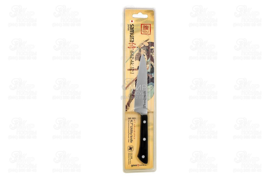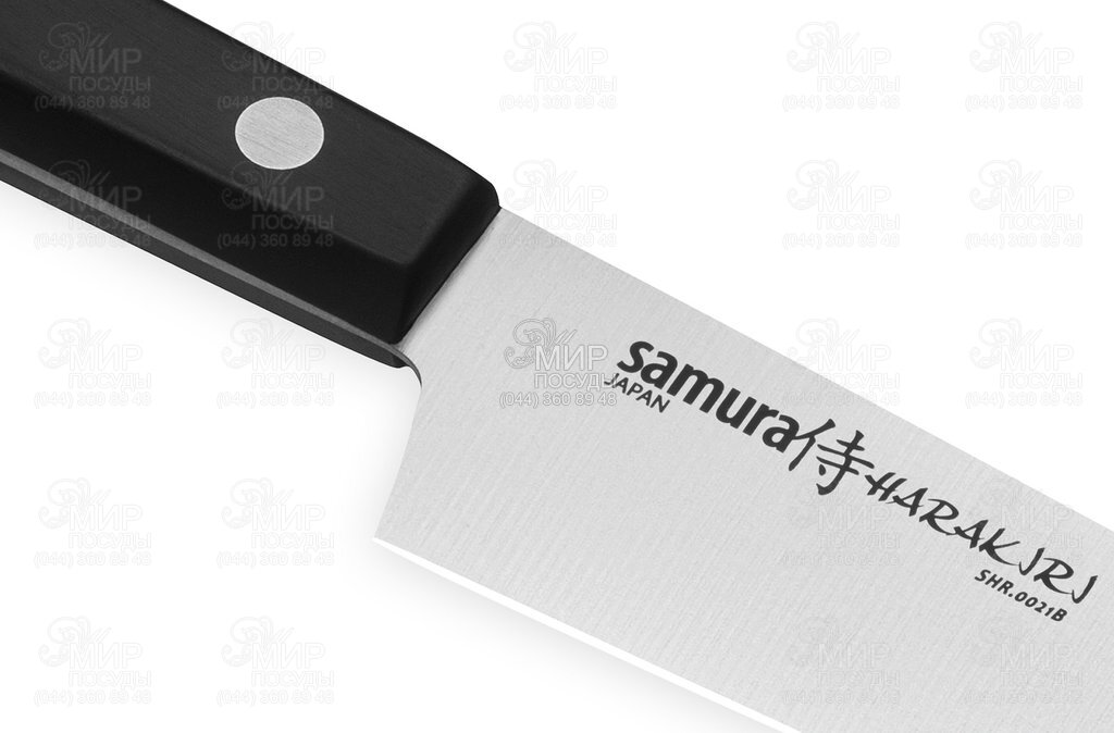 Легкий та багатофункціональний універсальний ніж – найпопулярніший інструмент на домашній та професійній кухні, використовується для різання невеликих овочів та фруктів, сиру, ковбас. Японська нержавіюча сталь AUS-8, з якої виготовлений ніж, має гарну корозійну стійкість, відмінну стійкість ріжучої кромки, легко полірується і шліфується. Рукоятка ножа, виконана з ABS пластику, зручно лежить у руці, не ковзає, не боїться вологи та перепадів температури, стійка до будь-яких агресивних середовищ. Samura "Harakiri" - легкі, зручні, чудові помічники на домашній кухні.