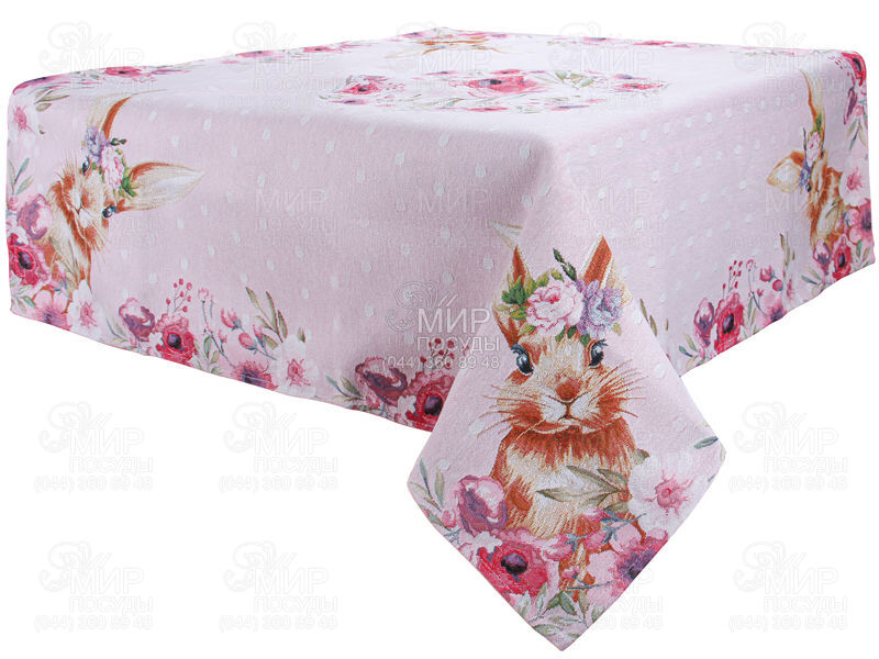 Світ посуду - Домашній інтер'єр - Домашній текстиль - Скатертини - Скатертина Великодня колекція рожева 140х220см 711-087