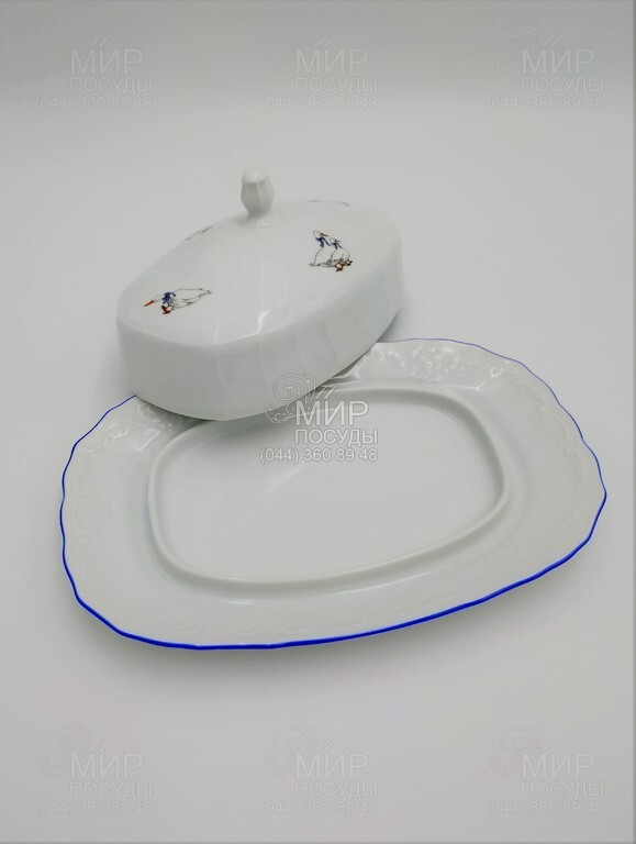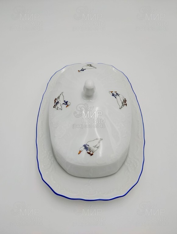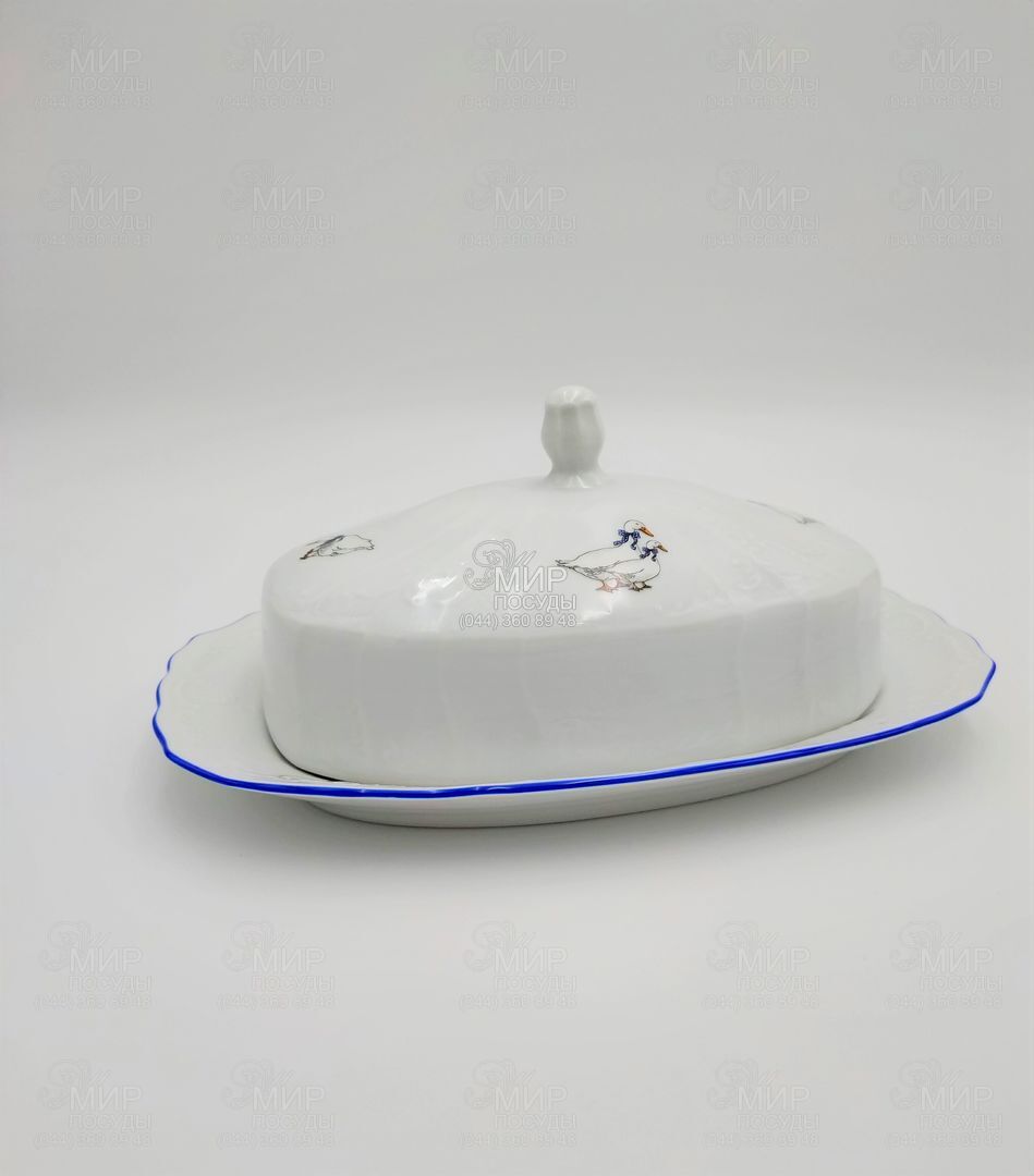 Світ посуду - Кухонний посуд - Масляни - Маслянка Bernadotte Гуси блакитний кант блакитний кант 21,5см