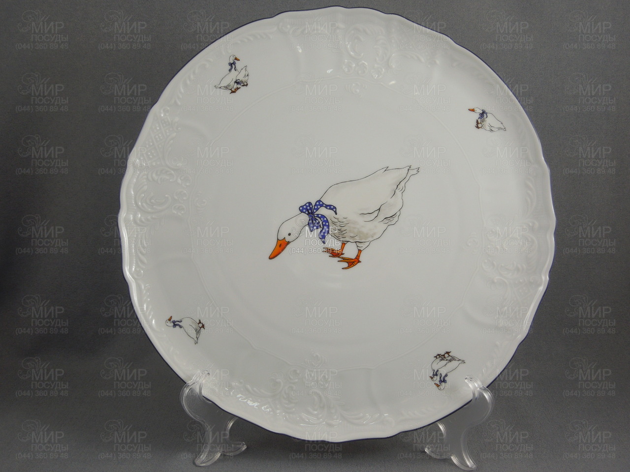 Світ посуду - Столовий посуд - Тортівниці - Тортівниці без ніжки - Тортівниця Bernadotte Гуси блакитний кант блакитний кант 32см