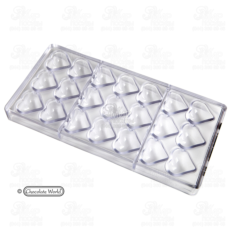 Форма для шоколаду від бельгійського бренду Chocolate World виготовлена із полікарбонату. У цій формі дуже зручно заморожувати лід, у тому числі фруктовий, а також готувати оригінальні ласощі з шоколаду. Незвичайні шоколадні цукерки, приготовлені в домашніх умовах, принесуть у захват і дітей та дорослих. Воду, сік або морс слід налити в комірки і залишити в морозильній камері до заморозки. Шоколад застигає у холодильнику.