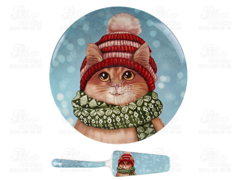 Світ посуду - Столовий посуд - Тортівниці - Тортівниці без ніжки - Тортівниця з лопаткою Різдво 26см 924-646