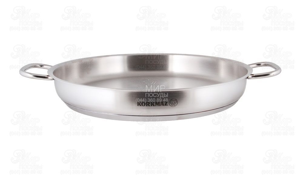 Сковорода Proline від турецького виробника Korkmaz виготовлена з нержавіючої сталі Cr-Ni 18/10. Володіє інкапсульованим товстим дном, що сприяє швидкому та рівномірному нагріванню посуду. Ергономічні міцні ручки не нагріваються під час приготування їжі, оскільки закріплені точковим зварюванням.